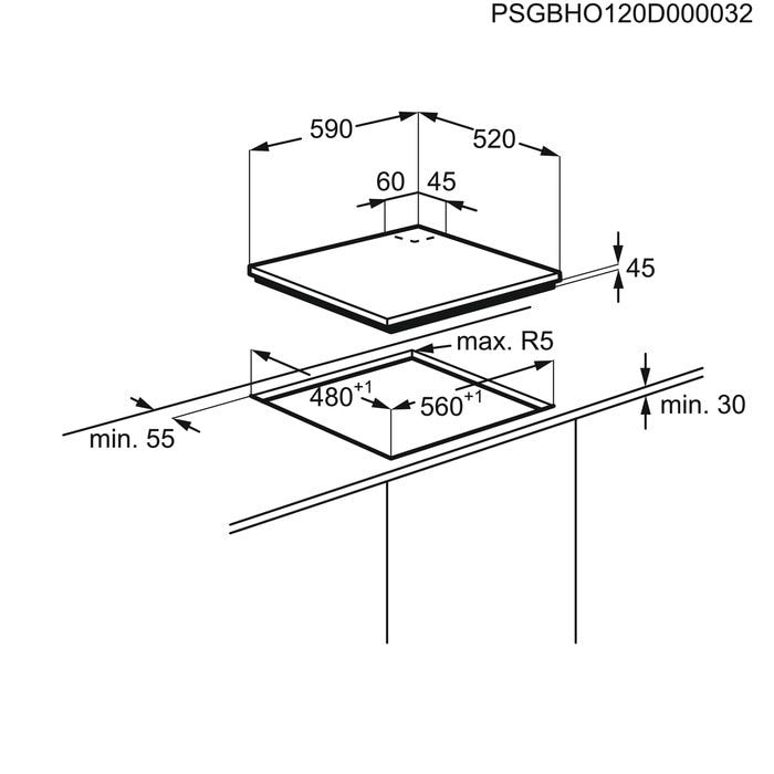 Electrolux EGG6426SK, Negro, Integrado, 59 cm, Encimera de gas, Vidrio, 4 zona(s)
