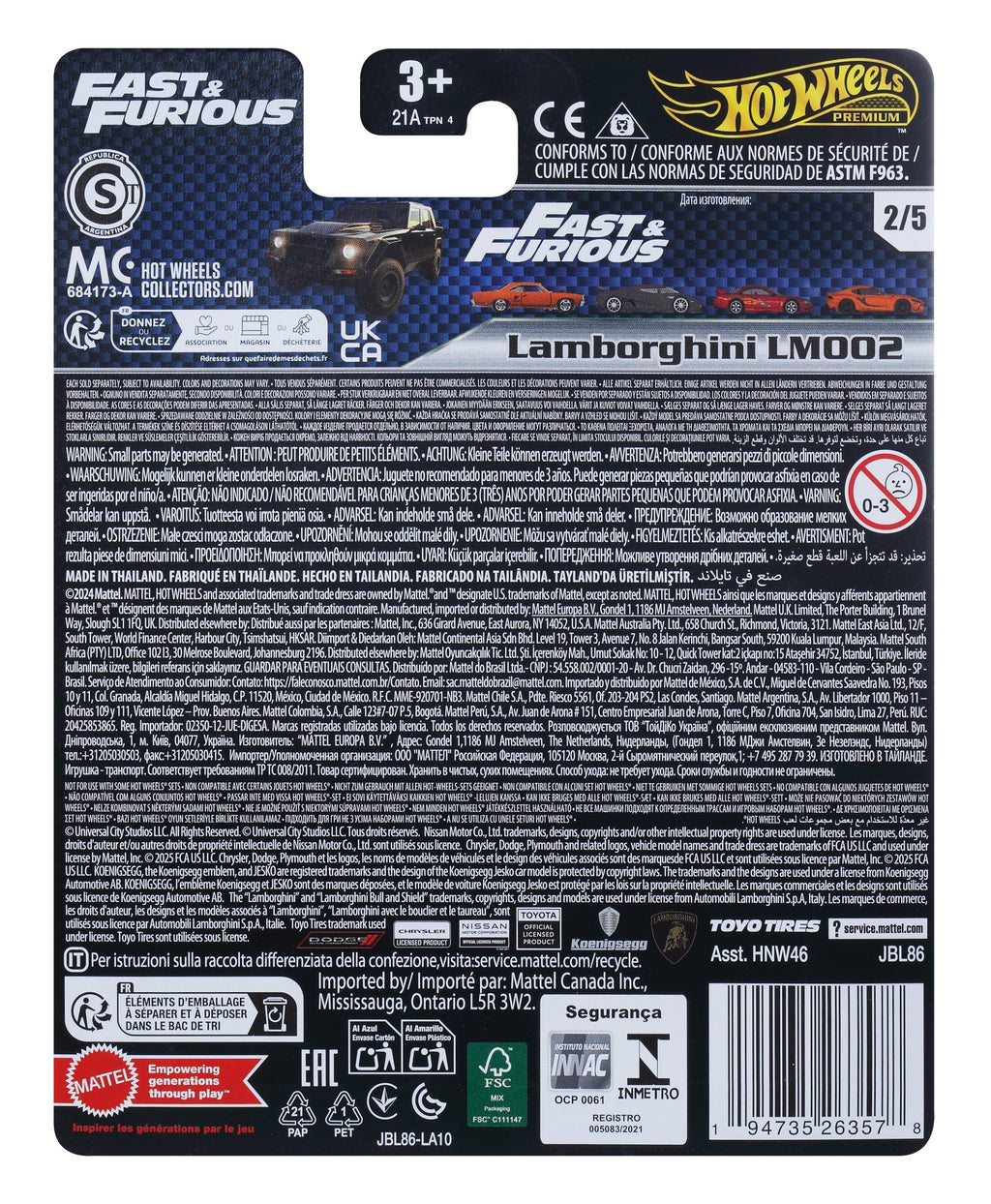Hot Wheels Fast & Furious lamborghini LM002, Coche, 3 año(s), Metal, Negro