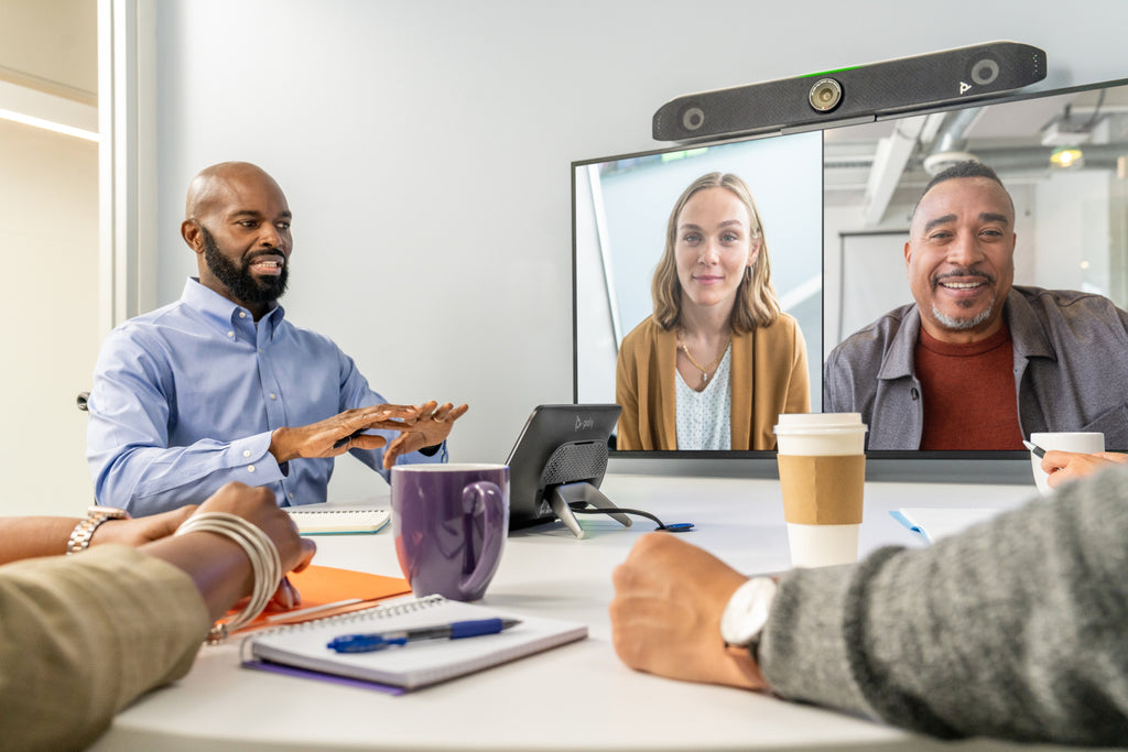 • Asegúrate de que todos estén representados por igual durante la llamada con imagen y sonido de calidad asociados a las tecnologías innovadoras de Poly, como el encuadre automático y el filtrado de audio inteligente de alta precisión y mejorados por inteligencia artificial.