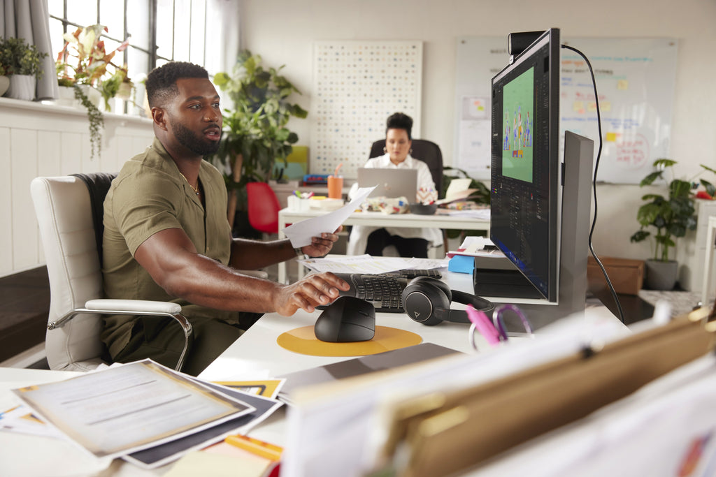 Por su elegante diseño de fibra de carbono, sus orejeras ultrasuaves y la diadema ajustable y ligera, te olvidarás de que llevas los auriculares. Disfruta de una comodidad de larga duración mientras te centras en el trabajo.