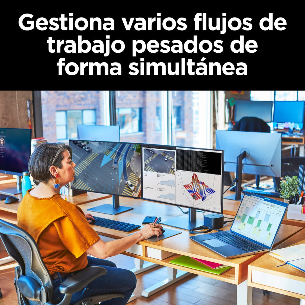 Aumenta la multitarea y la productividad gracias a Intel vPro con un procesador Intel Core™ i9 de próxima generación, diseñado para gestionar aplicaciones complejas con varios subprocesos.