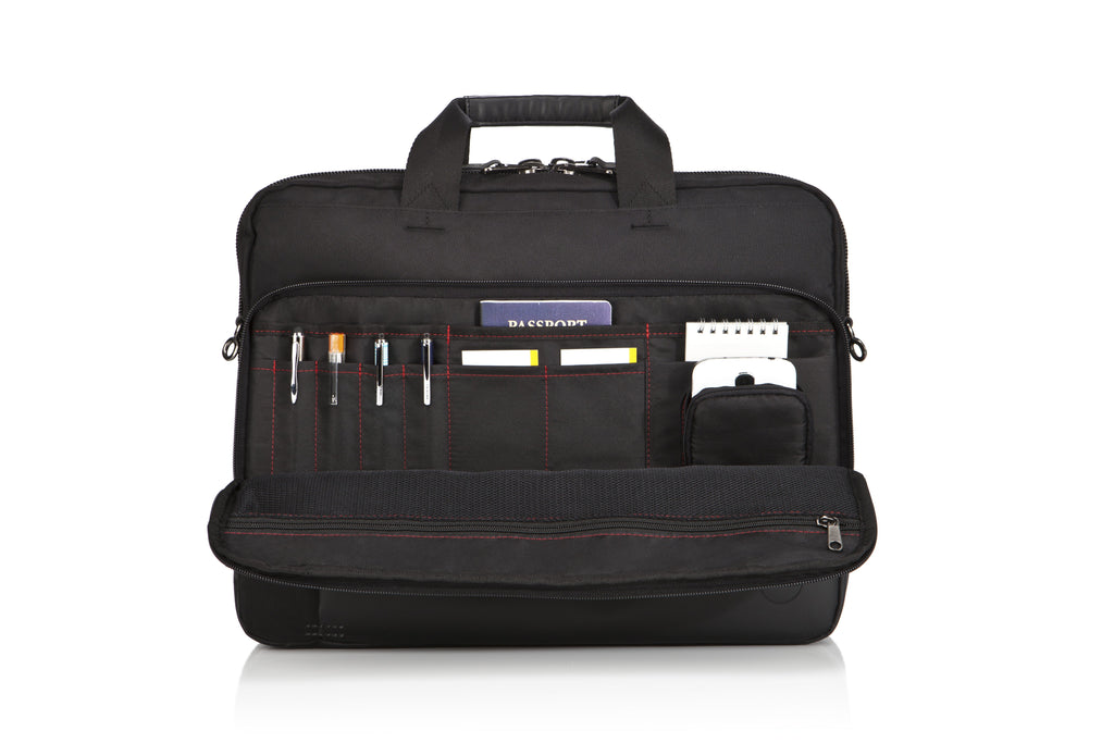 El maletín Dell™ Premier de 15,6' se diseñó como una oficina móvil para profesionales que buscan una forma segura y simple de transportar laptops, tabletas y accesorios, y de mantenerse productivos desde cualquier lugar como si estuvieran en la oficina. Cuenta con varios bolsillos de almacenamiento que mantienen documentos y accesorios organizados, y las divisiones para laptops y tabletas mantienen sus dispositivos electrónicos seguros y protegidos.Además, se agrega una funda para tabletas acolchada y forrada en material mullido que protege su tableta Dell y evita ralladuras y desgastes en la pantalla. Mantiene teléfonos, llaves, el mouse y otros accesorios organizados y al alcance de la mano fácilmente gracias a las divisiones para accesorios. A estas características se suman una tela exterior duradera que cuenta con refuerzos adicionales en las zonas de alto desgaste claves y detalles reflectantes que aumentan la visibilidad en estacionamientos con poca luz o en los pasos de peatones.