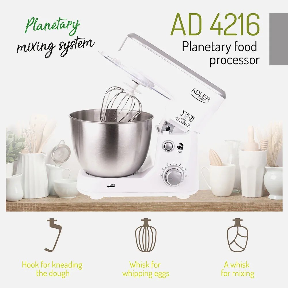 Adler AD 4216, 4 L, Blanco, Giratorio, Amasar, Mezcla, Acero inoxidable, 500 W