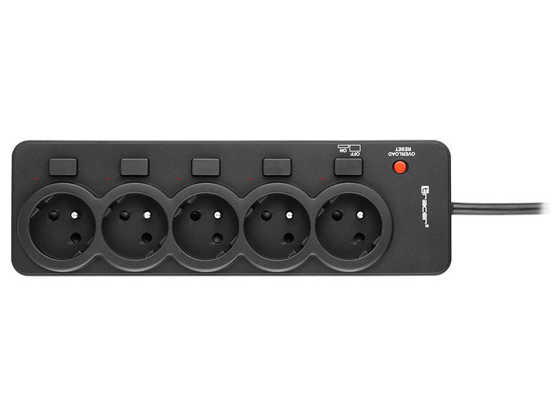 Tracer PowerGuard PRO, 5 salidas AC, Tipo F, 3680 W, Negro, 1,6 m, 200 mm