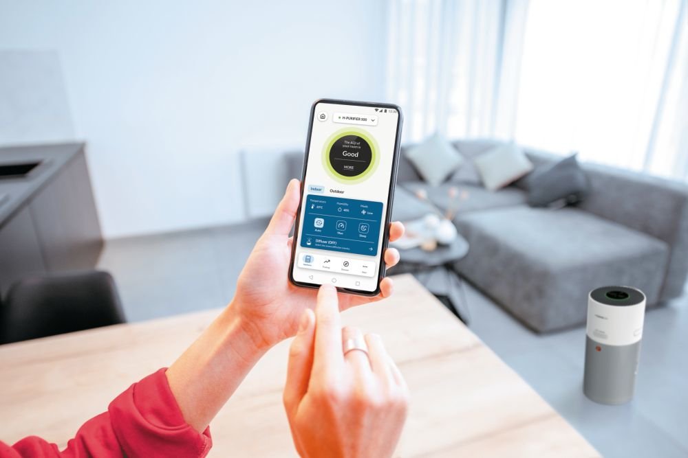 Mejora tu experiencia de purificación de aire con la App hOn. Accederás a un mundo de funciones útiles: control remoto de modos y ajustes de purificación, activación de difusor y planificación de programas. Además, la App hOn permite recopilar datos del aire interior y exterior a tiempo real sobre la contaminación, la humedad y la temperatura, y además ofrece estadísticas y pronósticos.