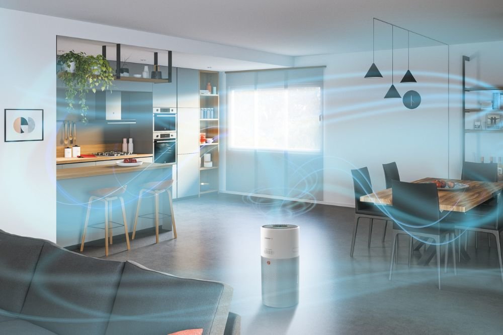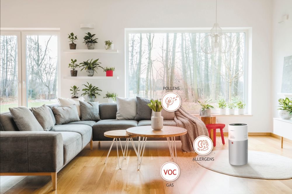Gracias al Sistema de Flujo de Aire 360º, H-PURIFIER 500 distribuye el aire purificado en todas las direcciones, incluso en los espacios grandes. Una vez son capturados los alérgenos y los contaminantes, el aire filtrado se extiende primero hacia el techo y luego a través de la habitación para llegar a todos los puntos de una manera rápida y eficiente.