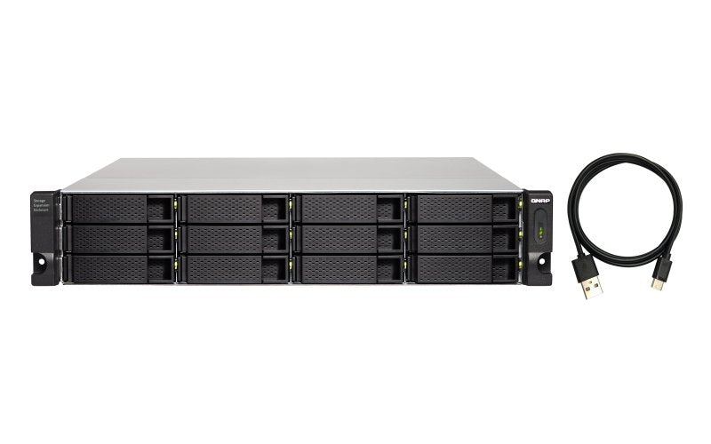 La caja de almacenamiento JBOD TL-R1200C-RP con montaje en rack le permite hacer copia de seguridad y expandir sus unidades NAS de QNAP, ordenadores (admite Windows y Mac) y servidores. El TL-R1200C-RP incluye doce bahías para unidades SATA 6Gb/s de 3,5 pulgadas con conectividad USB 3.2 Gen 2 (10 Gbps) Tipo-C para ofrecer una solución de expansión rápida y fluida.