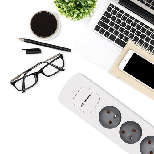 Qoltec 50297 base múltiple 1,8 m 6 salidas AC Interior Gris, Blanco