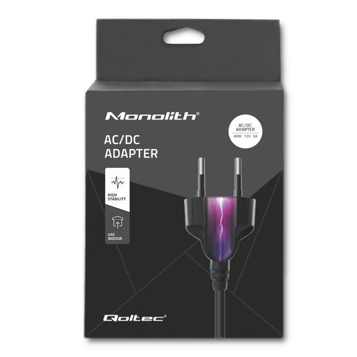 Qoltec 50796, Universal, Interior, 220 - 240 V, 50 - 60 Hz, 60 W, 12 V