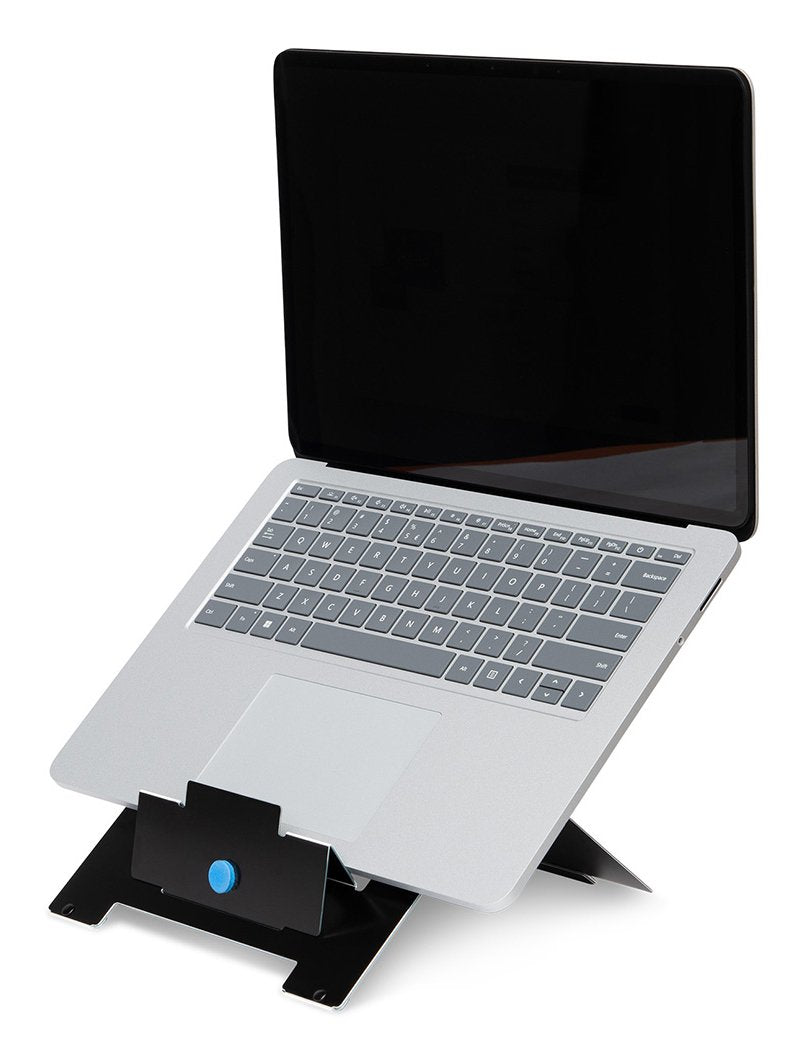 El R-Go Riser Flexible está fabricado con Hylite®: el material compuesto de aluminio más fino del mundo. Esto hace que el soporte sea muy ligero. Sólo pesa 190 gramos, pero tiene una capacidad de carga de nada menos que 5 kilos. Adecuado para todas las tabletas y portátiles de 10 a 22 pulgadas. Este soporte ultrafino para portátil es fácil de llevar en la bolsa del portátil. ¡Ideal para trabajar de forma saludable en cualquier lugar!