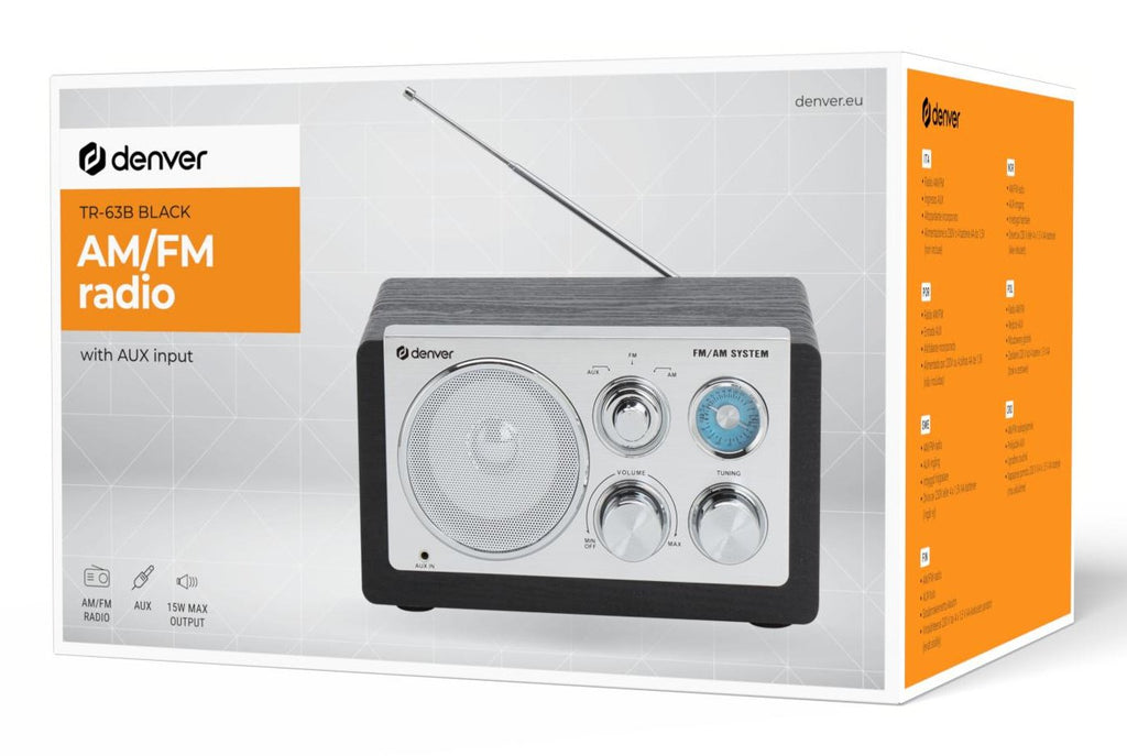 Denver TR-63B, Portátil, Analógica, AM, FM, 1,5 W, Negro, Externo