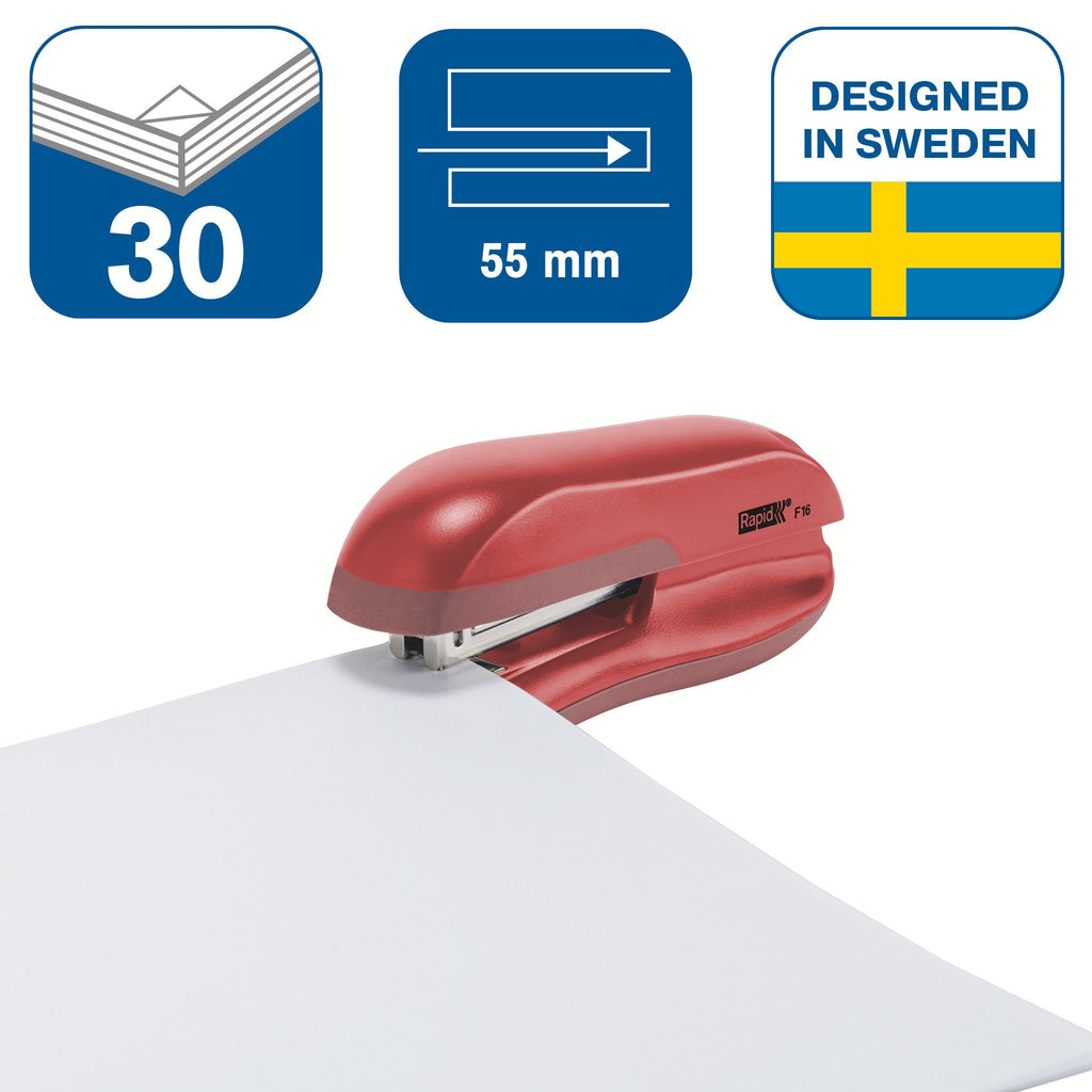 Rapid 23810503, 30 hojas, Rojo, Rapid 24/6 and Rapid 26/6, Acrilonitrilo butadieno estireno (ABS), Metal, Elastómero termoplástico (TPE), 80 g/m², 5,5 cm
