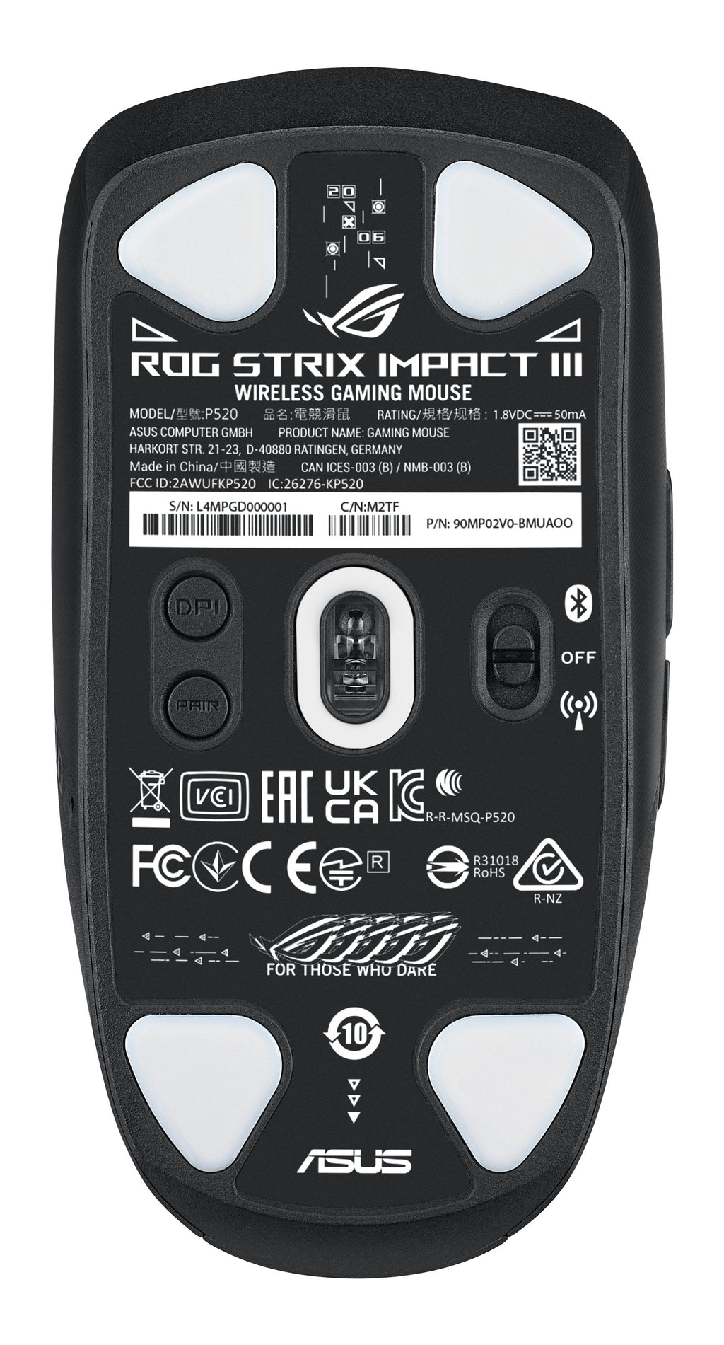 ASUS ROG Strix Impact III Wireless, Ambidextro, Óptico, RF Wireless + Bluetooth, 36000 DPI, Negro