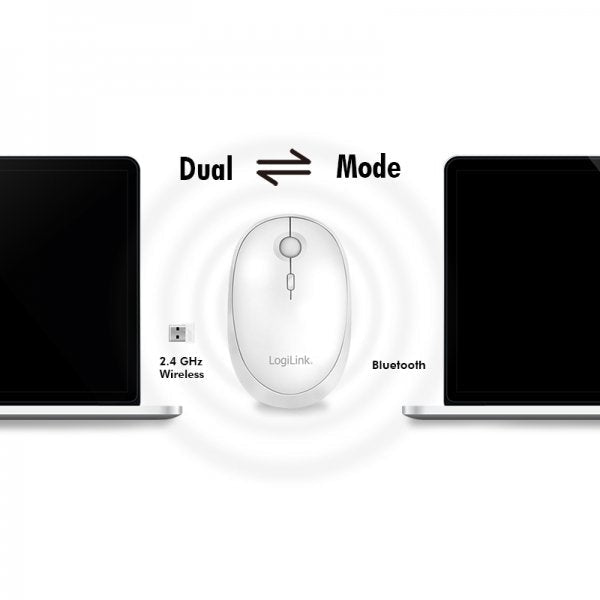 LogiLink ID0205, Ambidextro, RF Wireless + Bluetooth, 1600 DPI, Blanco