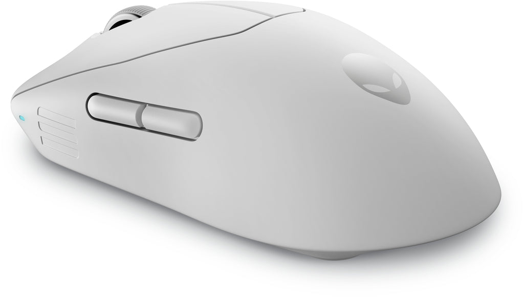 El ratón gaming inalámbrico Alienware Pro, cuyo peso han identificado los profesionales como el ideal para las partidas competitivas, es nuestro ratón más ligero hasta la fecha, dados sus menos de 60 g. La forma y el tamaño permiten moverlo fácilmente con baja sensibilidad sin renunciar al control.