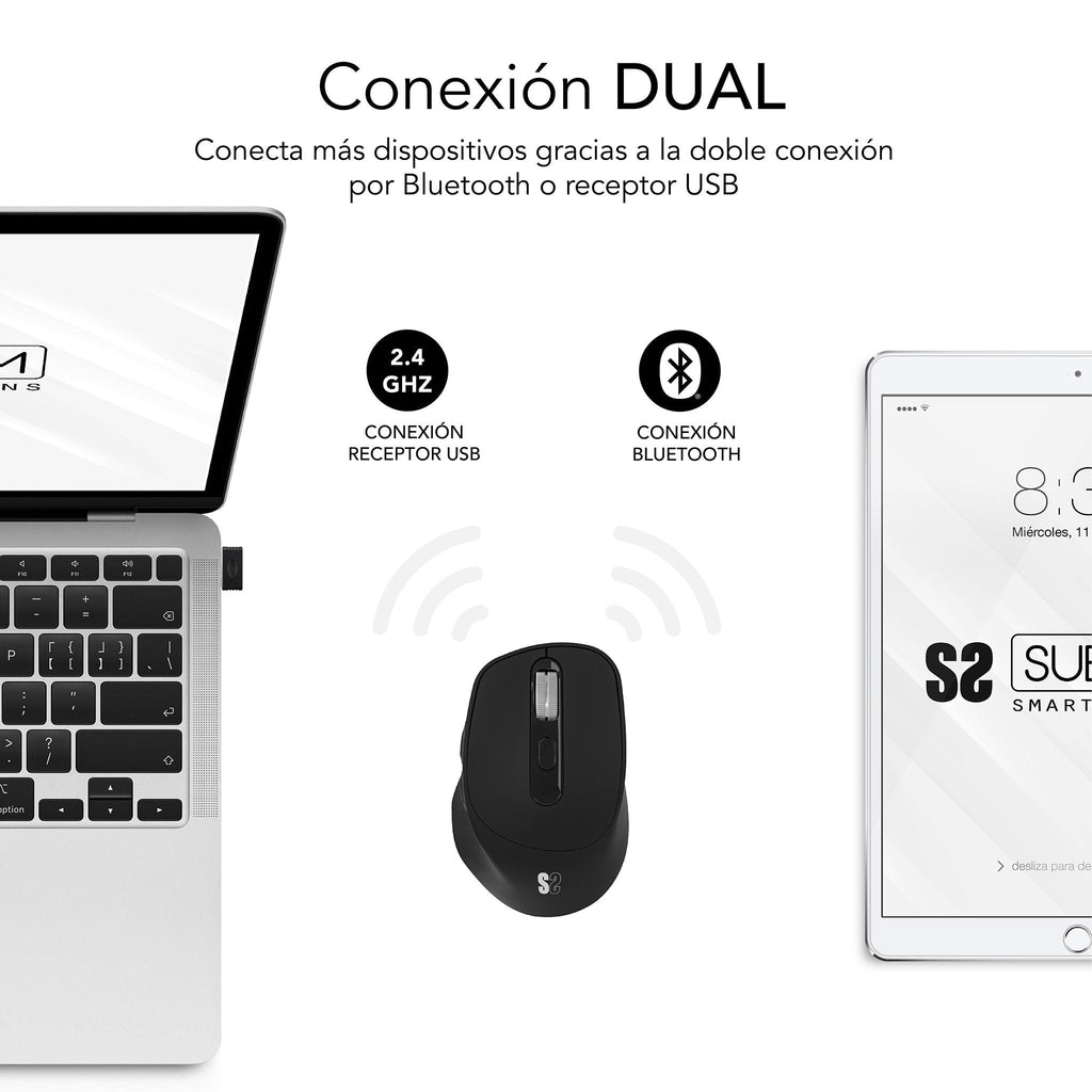 SUBBLIM RATON OPTICO DUAL COMFORT ERGO DUAL BATERIA NEGRO ratón Universal mano derecha Bluetooth + USB Type-A Óptico 2400 DPI