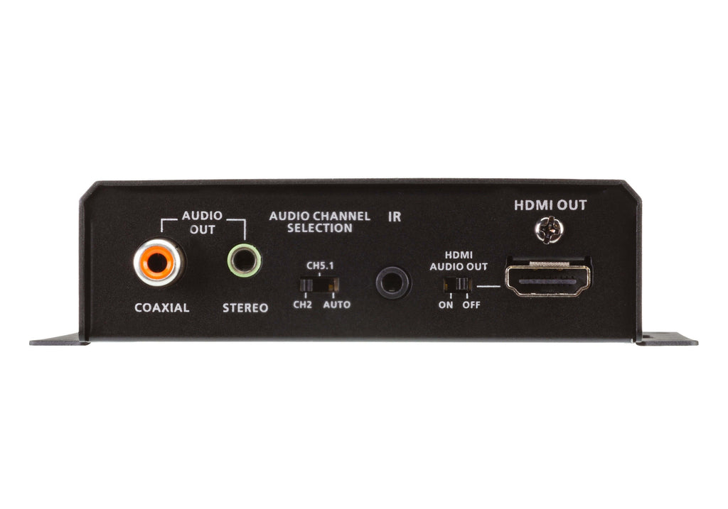- Desincrustación de audio: extrae el flujo de audio de la fuente HDMI y lo emite como audio independiente desde HDMI al cable S/PDIF coaxial o a la salida de audio estéreo