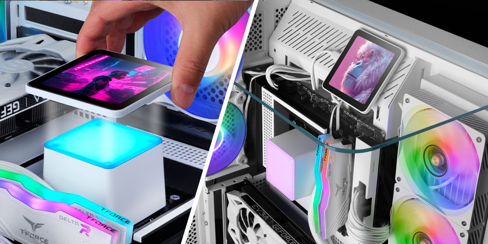 La pantalla IPS de 4" ultrafina te permite mostrar en tiempo real imágenes, vídeos, animaciones GIF o estadísticas del sistema mediante software de control avanzado. Gracias a su base magnética, puedes colocarla donde quieras: dentro o fuera del chasis, sobre la mesa o en una zona visible de la torre.