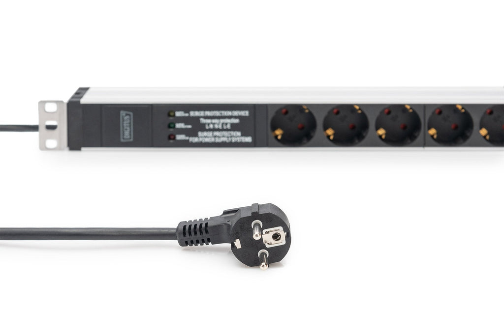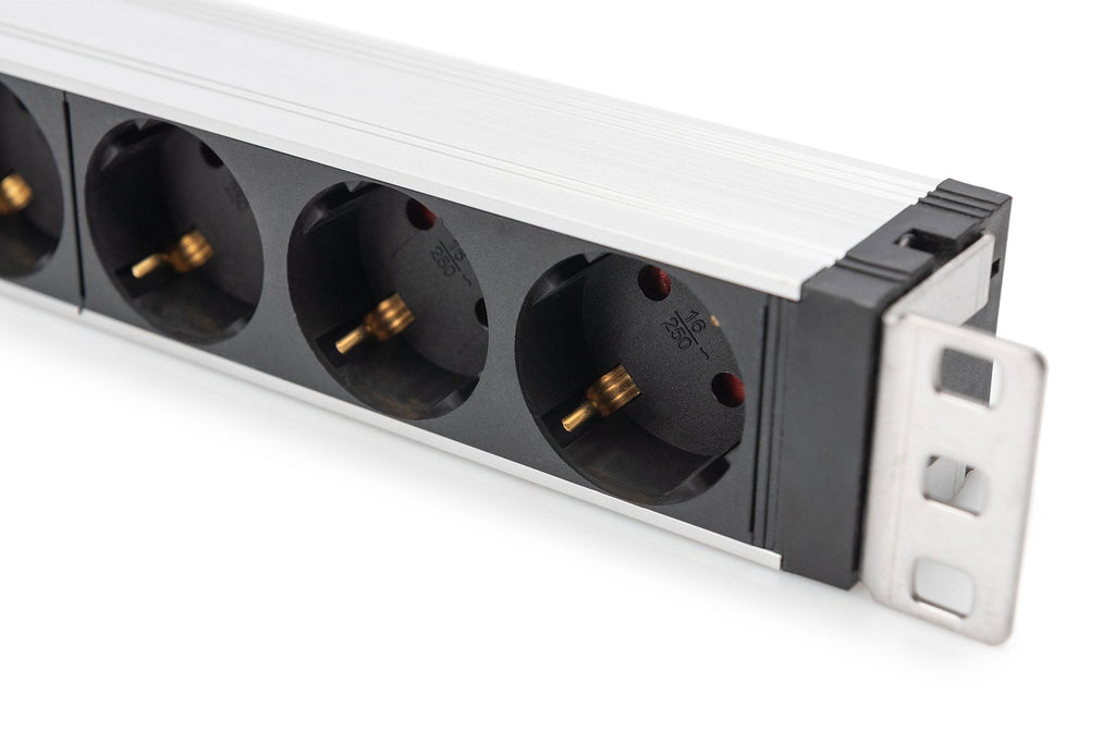 Las regletas de enchufes DIGITUS® son la solución perfecta para su armario de red o de servidores. Con vistas a la distribución de corriente, la PDU cumple los requisitos de numerosas aplicaciones en los ámbitos de TI, tecnología de redes, laboratorios, así como en el hogar. La regleta de enchufes se puede montar en poco espacio en 1UA en armarios de 19". Un filtro de red y una protección contra sobretensiones protegen a los consumidores conectados de interferencias desde la red. Según el tipo de armario existe la posibilidad de fijar la regleta de enchufes con las tomas hacia la derecha o hacia la izquierda.