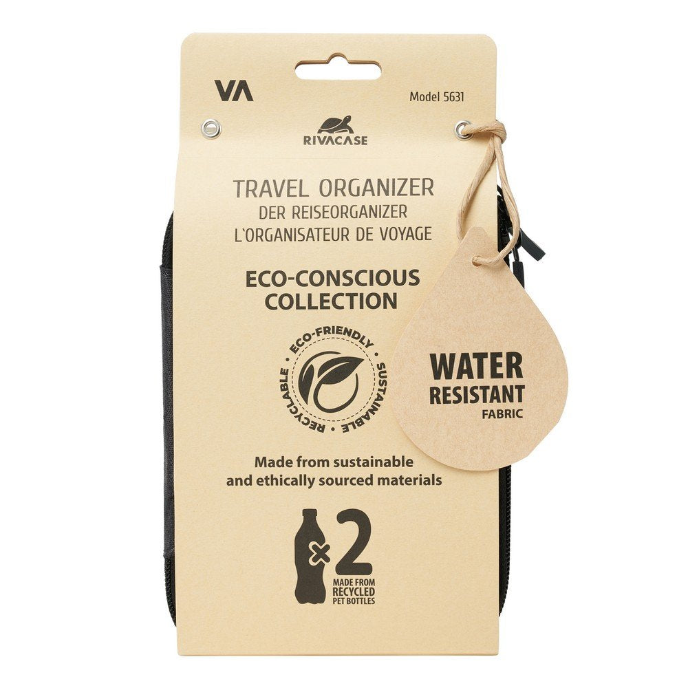Rivacase 5631 Organizador de viaje ECO negro, Poliéster, Negro, 2 bolsillos, Cremallera, 135 mm, 40 mm