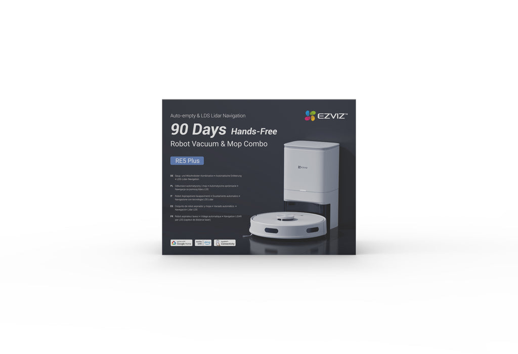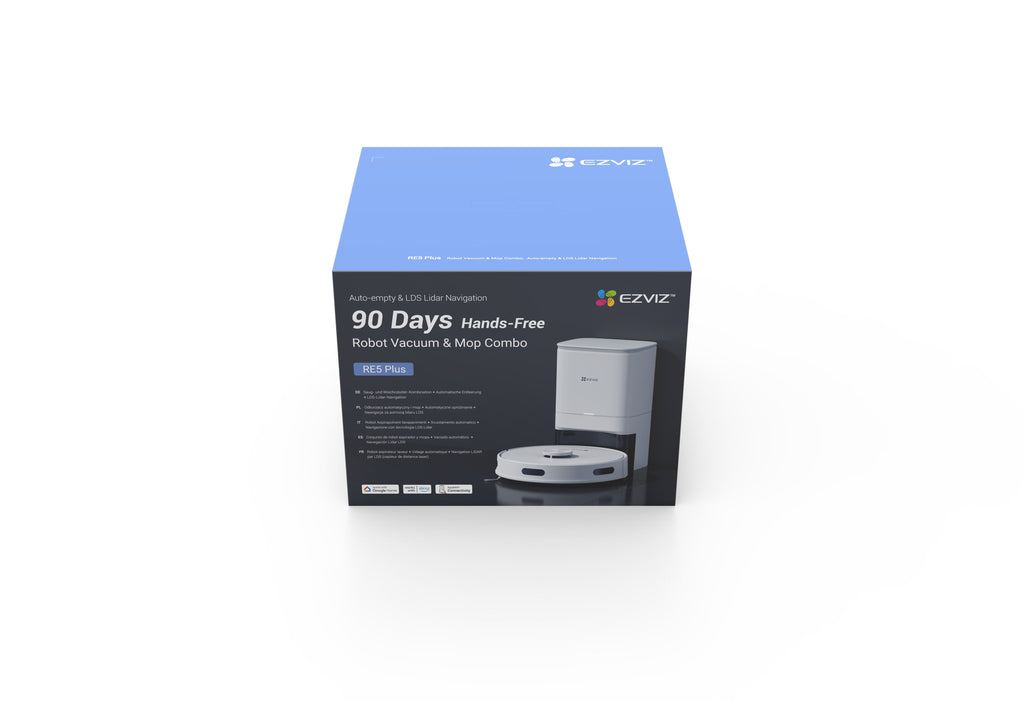 Con un diseño de aspiradora y fregona en un solo dispositivo, el RE5 Plus es la opción perfecta para evitarle rutinas de limpieza tediosas, repetitivas y agotadoras. Ofrece una potencia de succión de 4000 Pa, líder en el sector, un gran depósito de agua y navegación inteligente para impulsar a fondo la limpieza de todo el hogar. La base de carga universal recoge y sella automáticamente el polvo, lo que permite aspirar sin necesidad de utilizar las manos durante un máximo de 90 días. Disfrute de un control sencillo y una limpieza personalizada, la forma más eficiente de limpiar su hogar, con la aplicación EZVIZ.