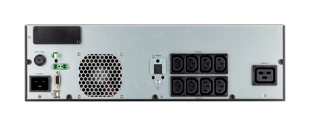 Emite una potencia nominal de 1000-2000-3000-5000-6000-10000VA. Está equipado con baterías de acumuladores herméticos, regulados por válvulas, que se encuentran en un contenedor externo (battery pack).