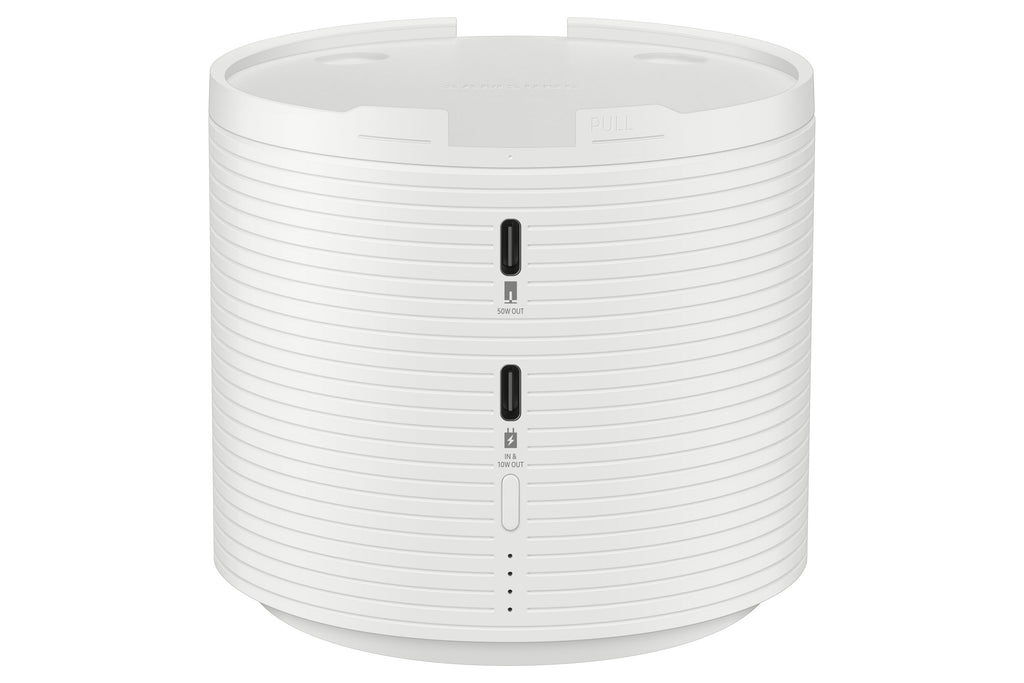 Carga tu dispositivo móvil con la batería base de The Freestyle mientras lo usas para cargar el proyector The Freestyle al mismo tiempo