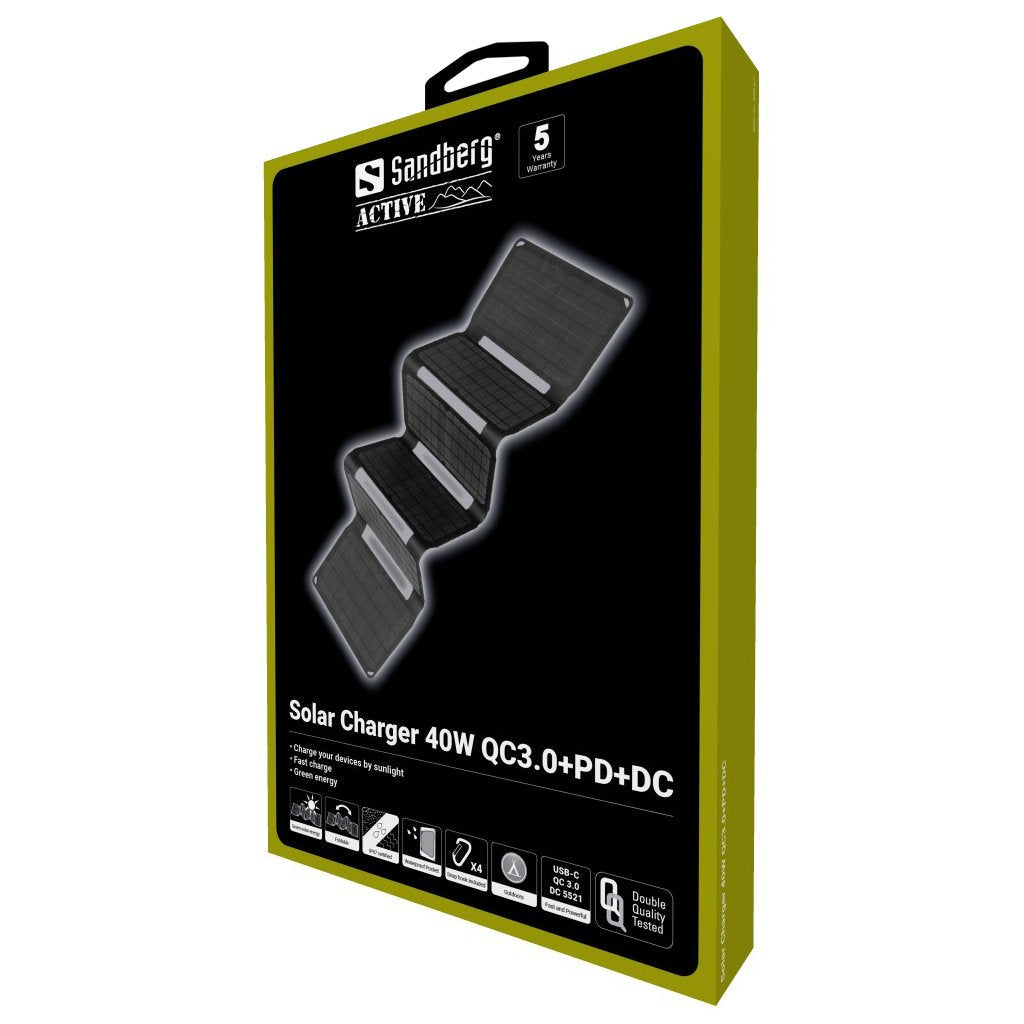 Sandberg Solar Charger 40W es un panel solar compacto con un gran rendimiento. Este panel solar plegable se despliega en 6 paneles monocristalinos que dan una salida combinada de hasta 40W. En la caja de control del panel tienes 3 puertos rápidos: