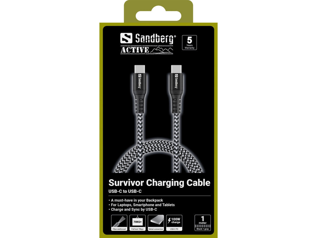 Sandberg Survivor Cable es un cable de carga que dura. El cable está hecho de kevlar super-resistente en doble nylon trenzado y los conectores están hechos de metal fundido. Las conexiones extra fuertes aseguran que la unión entre el enchufe y el cable no se romperá. Ha sido probado tirando de 70Kg y doblado más de 60.000 veces.