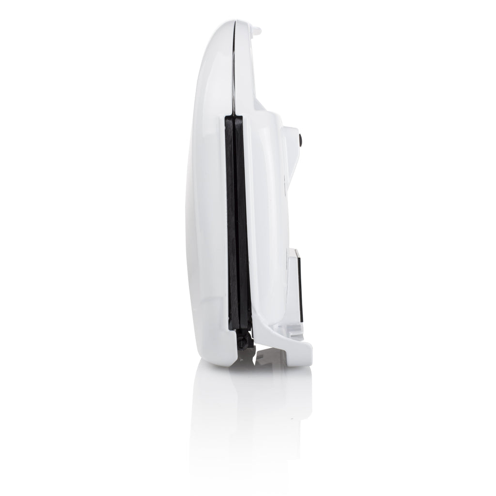 Sandwichera de tamaño compacto con compartimento para cable y tapa con cierre de seguridad para guardar con facilidad