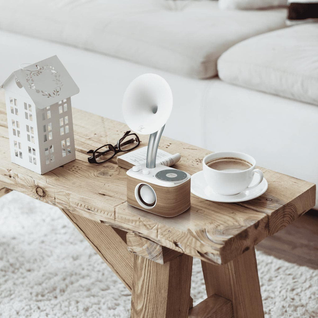 Esta atractiva radio le sorprenderá a usted y a todos los que la vean. Cárguela con el adaptador incluido y tendrá más de 25 horas de radio, todo ello gracias a la batería de litio de 2600 mAh de su interior.