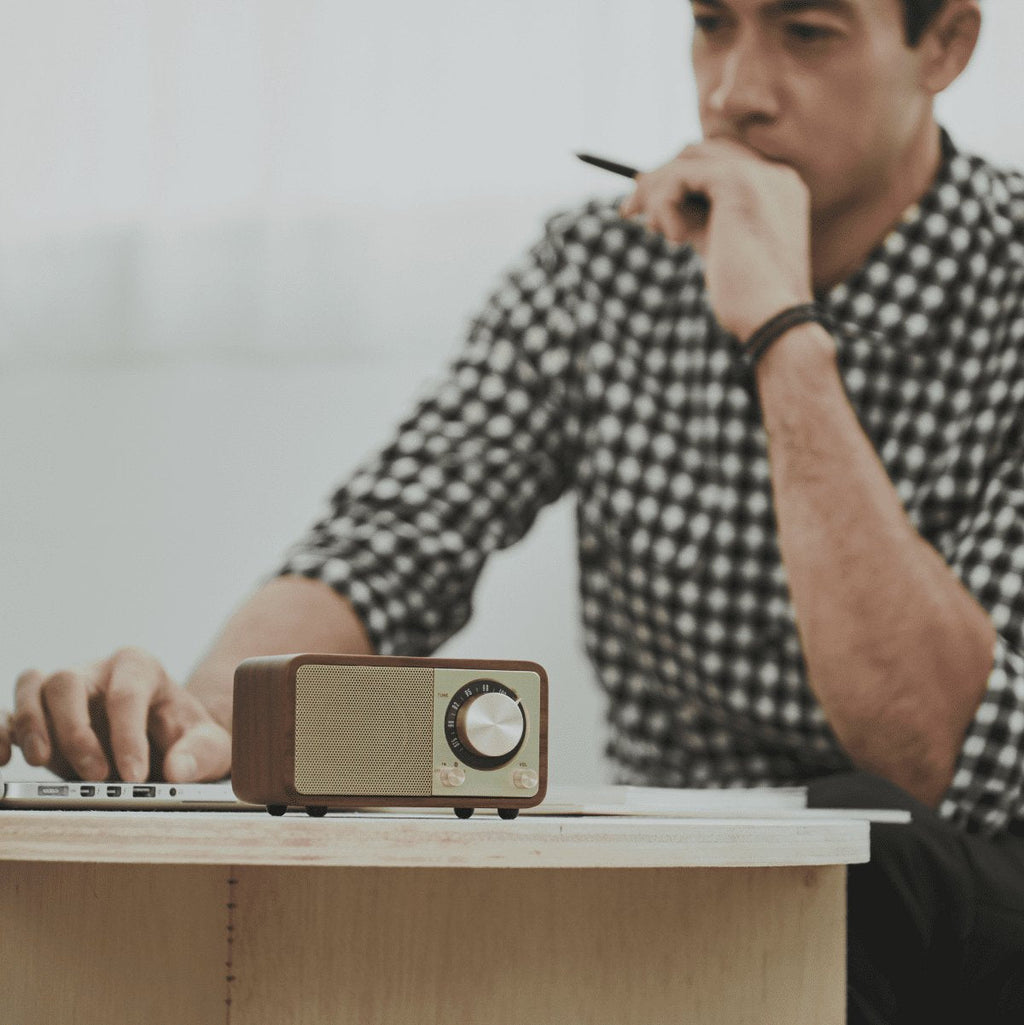 La WR-7 es la radio más encantadora que jamás haya visto. Esta radio FM tiene un aspecto clásico que se complementa con la carcasa de madera acústica con un altavoz que le sorprenderá.