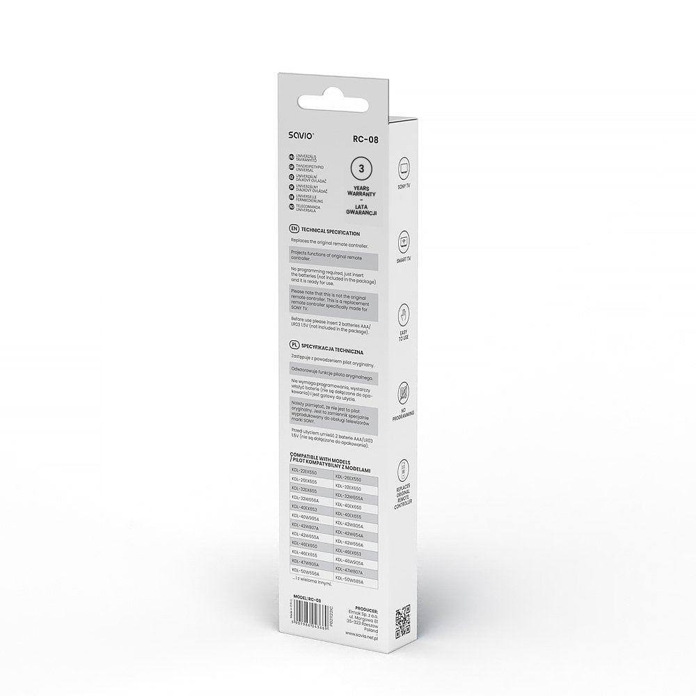 Mando a distancia universal/reemplazo para televisores SONY RC-08 – sustituye al mando original. Imita las funciones del mando original. No requiere programación: solo inserta las pilas y estará listo para usar.