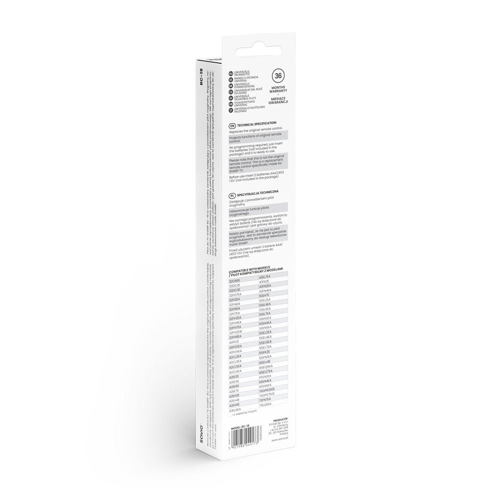 El mando a distancia RC-19 es un dispositivo universal diseñado específicamente para televisores SHARP. Combinando simplicidad, funcionalidad y un precio asequible, ofrece una manera cómoda de gestionar las funciones más importantes de tu televisor. Esta solución fiable es perfecta para el uso diario.