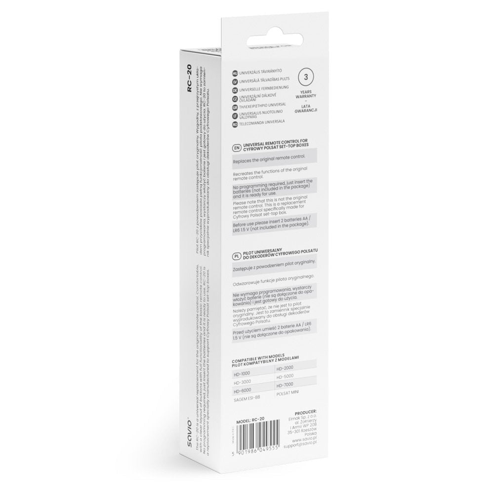 - Contenido del paquete: Uniwersalny pilot SAVIO RC-20 Instrukcja obsługi