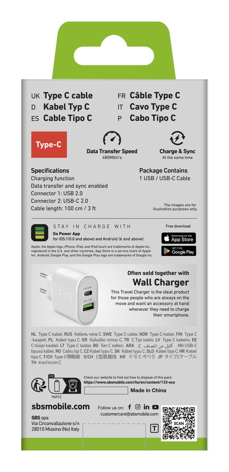 SBS TECABLEMICROC10W cable USB USB 2.0 1 m USB A USB C Blanco