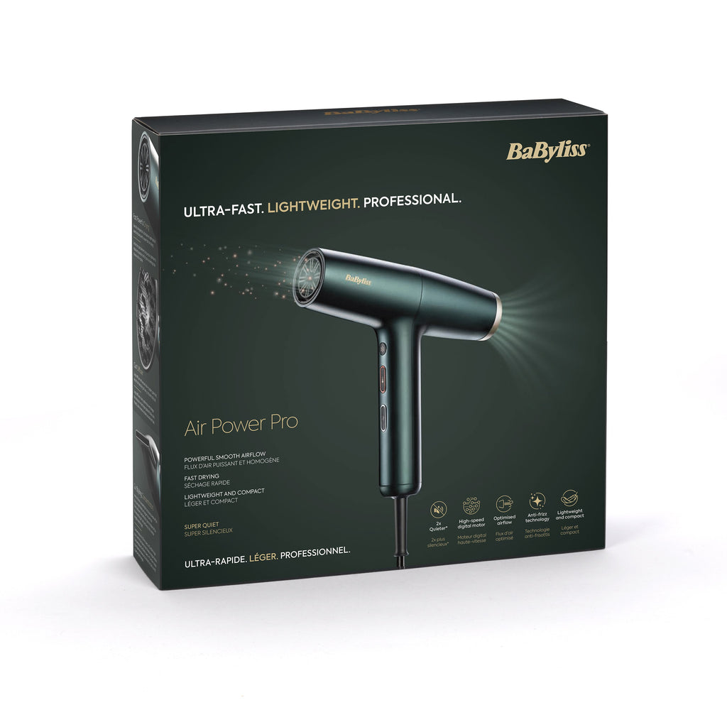 BaByliss Air Power Pro, Cerámico, Digital, 56 m/s, Oro, Verde, Monocromo, 2,5 m