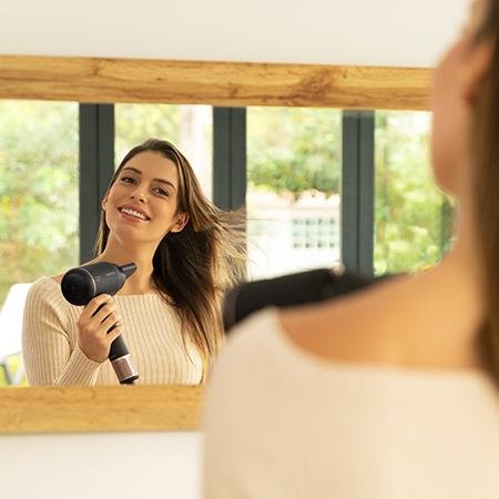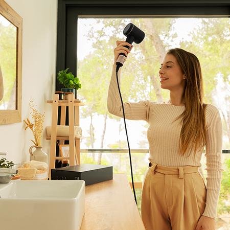 Gracias a sus 1600 W de potencia y a que genera un mayor caudal de aire, el secador te permite secar tu pelo reduciendo el tiempo de secado en casi un 50%