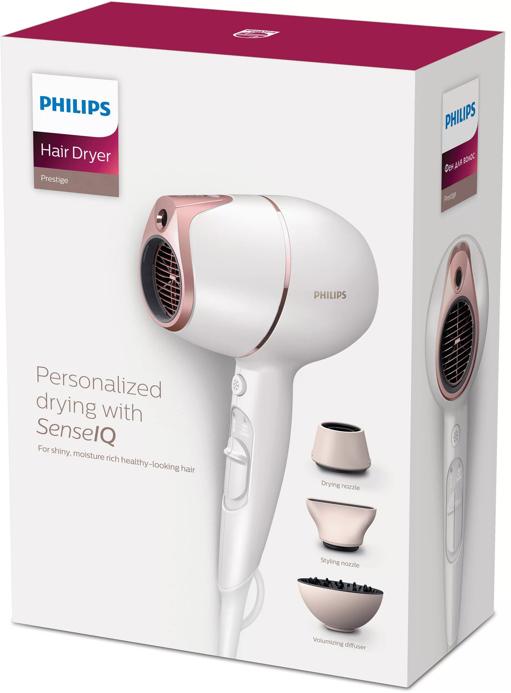 Presentamos el secador Philips con SenseIQ. Siente y se adapta a tu pelo y ajusta la temperatura para evitar el sobrecalentamiento y así conservar la humedad natural del cabello. Cada vez que te lo seques, sentirás el pelo hermoso y cuidado.