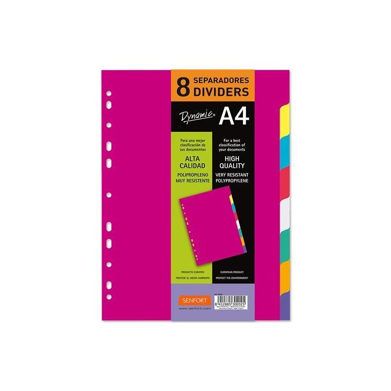 Senfort Juego 8 Separadores A4 Pp Rígido Dynamic C/Surtidos