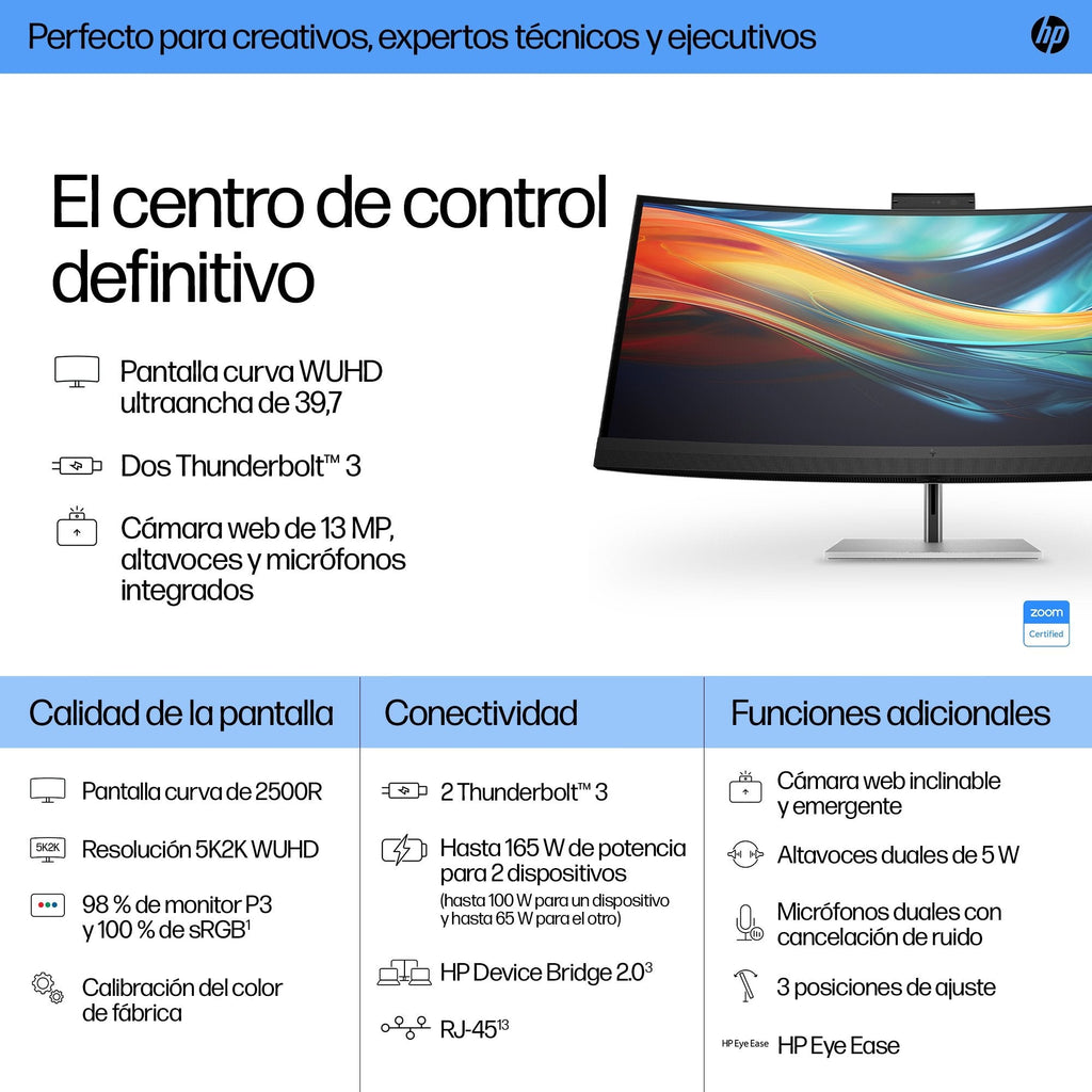 HP Series 7 Pro 39.7 inch 5K2K Conferencing Monitor - 740pm pantalla para PC 100,8 cm (39.7") 5120 x 2160 Pixeles 5K Ultra HD LCD Negro, Plata
