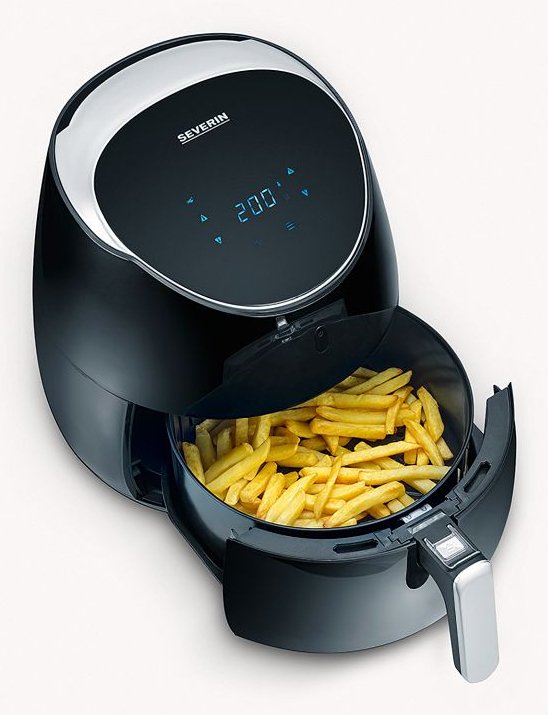 Severin FR 2445 freidora Sencillo 5 L Independiente 2000 W Freidora de aire caliente Negro, Metálico, Plata