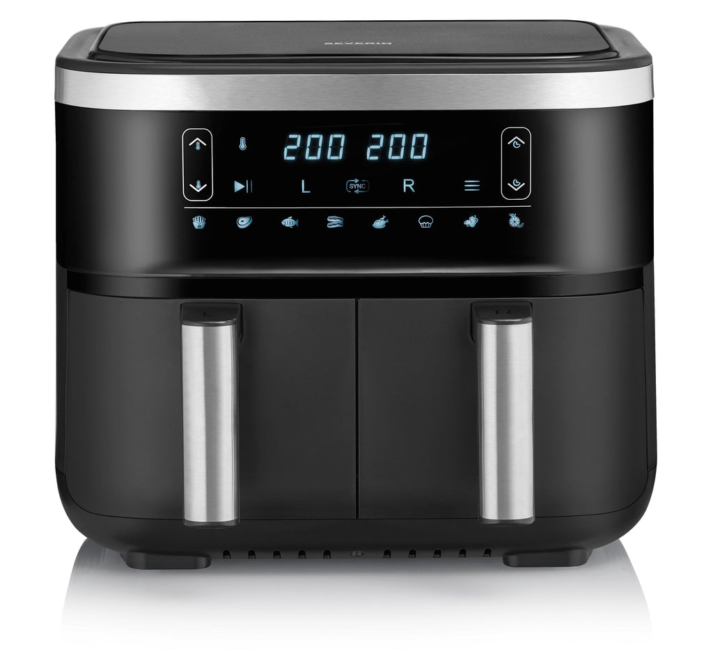 Severin FR 2453 freidora Doble 3,25 L Independiente 2850 W Freidora de aire caliente Negro, Plata