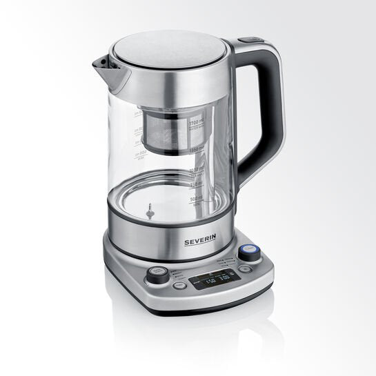 Severin WK 3422, 1,7 L, 3000 W, Acero inoxidable, Vidrio, Acero inoxidable, Ajustes de termostato, Indicador de nivel de agua