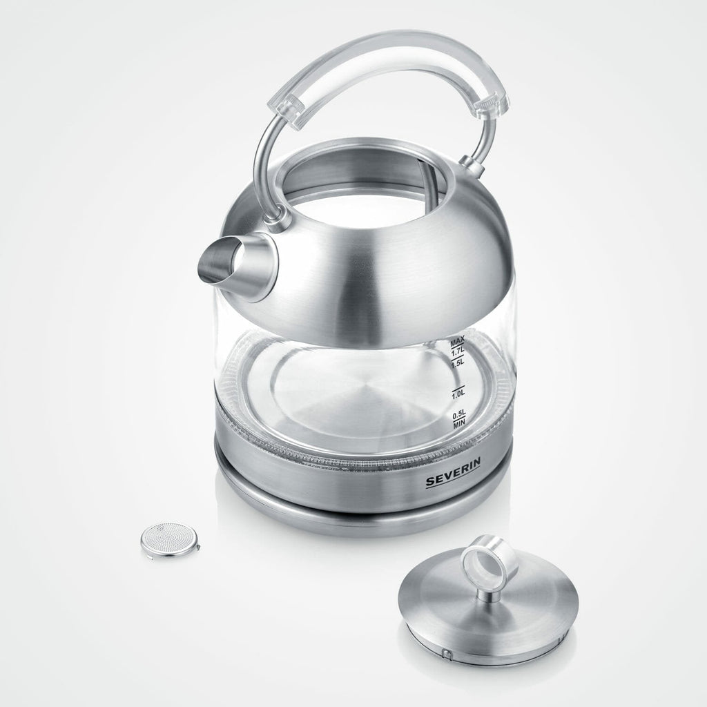 Severin WK 3459, 1,7 L, 2400 W, Acero inoxidable, Vidrio, Acero inoxidable, Indicador de nivel de agua, Protección contra sobrecalentamiento