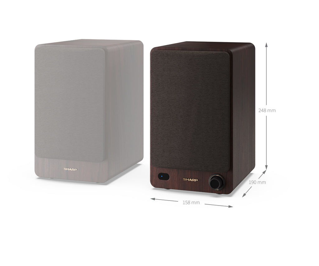 Sharp BOOKSHELF SPEAKERS, De 2 vías, 2.0 canales, Inalámbrico y alámbrico, 60 W, Marrón