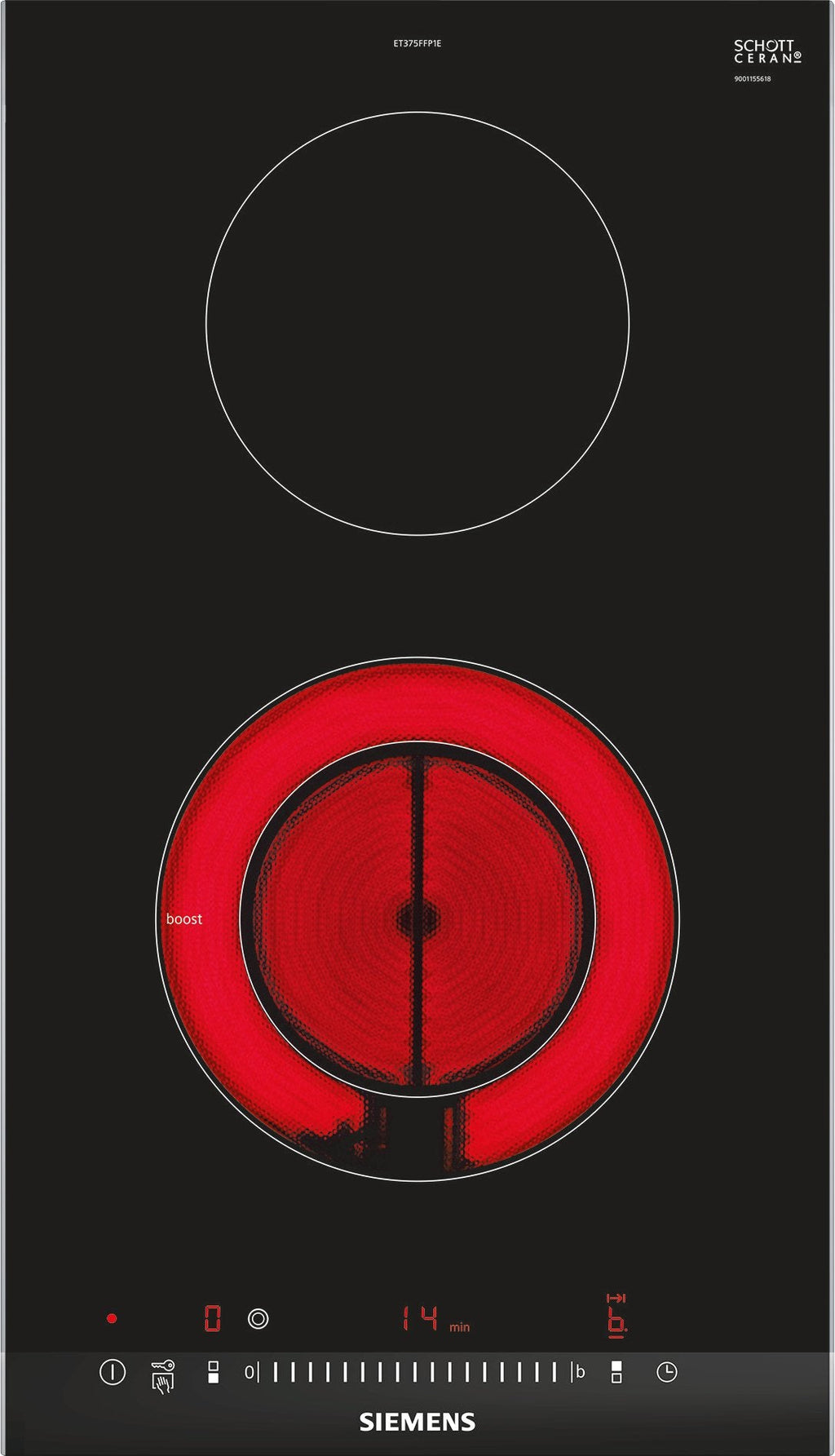 Siemens ET375FFP1E, Negro, Acero inoxidable, Integrado, Cerámico, Vidrio y cerámica, 2 zona(s), 2 zona(s)