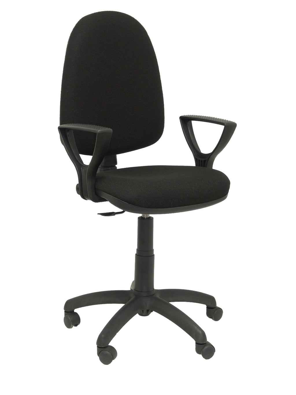 PIQUERAS Y CRESPO Modelo Ayna - Silla de oficina ergonómica con mecanismo de contacto permanente y regulable en altura - Asiento y respaldo tapizados en tejido BALI color negro (BRAZOS FIJOS INCLUIDOS)