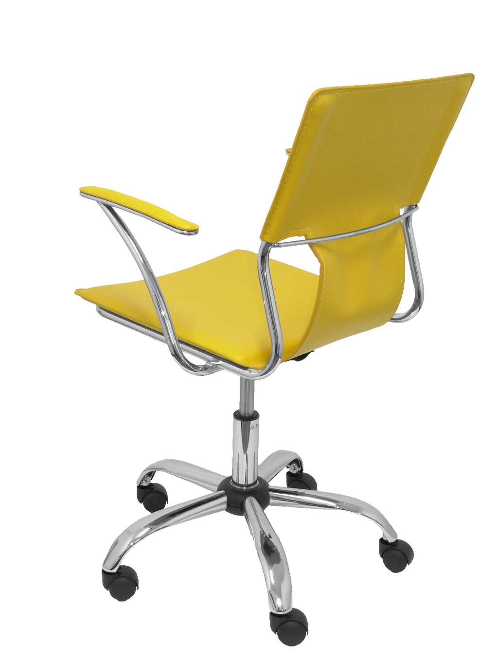 FORÖL Modelo Bogarra - Silla de oficina ergonómica con brazos fijos, regulable en altura y mecanismo basculante - Asiento y respaldo tapizados en similpiel color amarilla.
