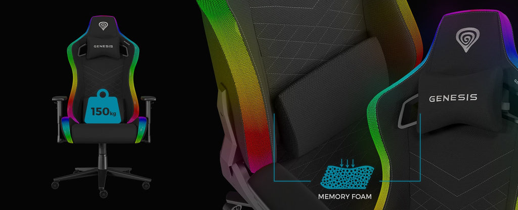 La Genesis Trit 660 RGB ofrece más de 300 llamativos modos de retroiluminación que puedes personalizar según tus preferencias. ¿Quieres que la silla combine con los accesorios verdes de tu escritorio? Con unos pocos clics, se mimetizará con tu entorno. Con la posibilidad de ajustar la velocidad y el brillo de los efectos, crearás una atmósfera inolvidable en tu habitación, ya sea un juego de rol, de estrategia en tiempo real o tu título multijugador favorito.